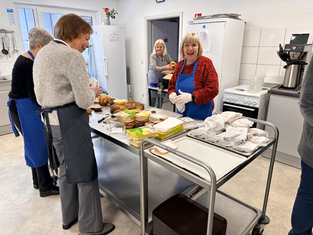 - 11:30 – 13:30 Uhr Essensausgabe durch drei Helfer (0,50 Euro Kostenbeteiligung pro Person); zubereiten und ausgeben.